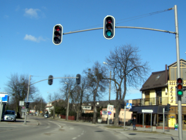 Wjeżdżając do Wejherowa wybieramy drogę na wprost z pierszeństwem zdejmując nogę z gazu ze względu na czynny radar działający w obie strony.