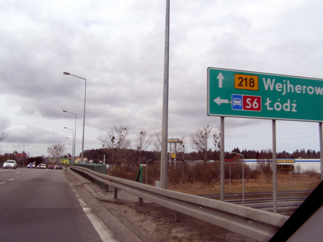 Skrót rozpoczyna się na 325 km drogi S6, gdy nawigacja wykazuje 55 km i ok. 50 min do Karwii. |